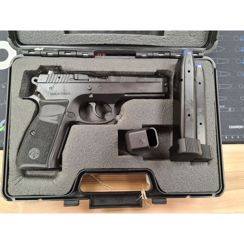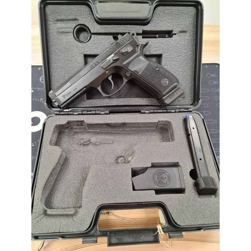 Les séries S et P ont été initialement conçues pour des unités spécialisées de police et de force armée opérationnelle. Le P 120 est doté d'un rail pour la fixation d'une lampe ou d'un laser à l'avant de sa carcasse. Sa fabrication tout acier, son ajustage, son canon de 120 mm en fait un pistolet d'une précision redoutable sur les pas de tir. Il est livré dans une mallette de transport avec 2 chargeurs 19 coups, une chargette et un nécessaire de nettoyage. Rapport qualité-prix inégalé !.